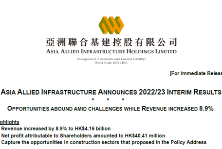 Asia Allied Infrastructure Holdings Limited (“Asia Allied Infrastructure” or “the Group”) is listed on the Main Board of the Hong Kong Stock Exchange under stock code 00711.HK, was founded in 1968. It is engaged in various businesses including construction engineering and management, project consultancy, Property Development, and Assets Leasing, Security and Facility Management Services, etc. With Hong Kong as its business development base, the Group is also exploring development opportunities with Asia as the main focus, as well as in overseas markets.