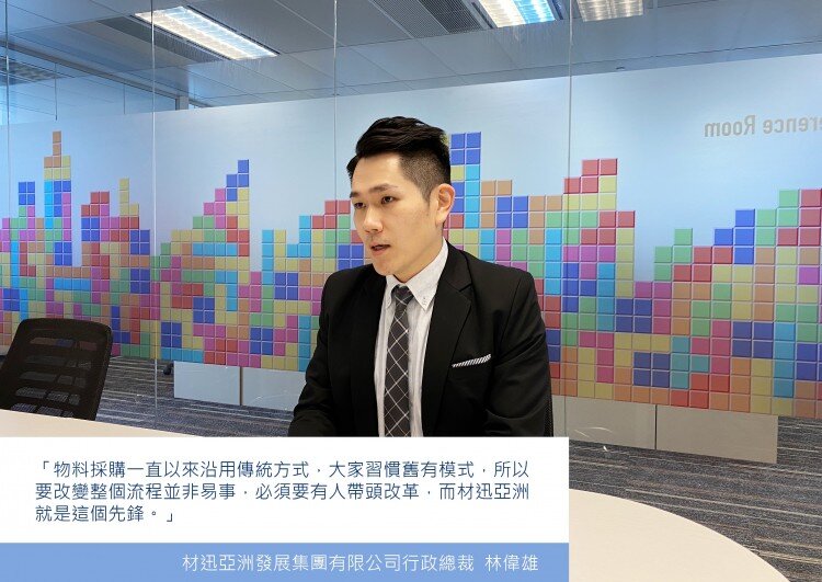 亞洲聯合基建集團(股份代號:00711.HK)成員材迅亞洲發展集團有限公司(材迅亞洲)負責人林偉雄(Roy)指出,一直以來,建築材料的採購及管理都以線下形式進行,經常遇到資料遺失或缺漏等情況;而香港傳統建築材料採購程序複雜,以電話、電郵形式聯繋,從報價到確認訂單,來來回回也消耗不少時間。